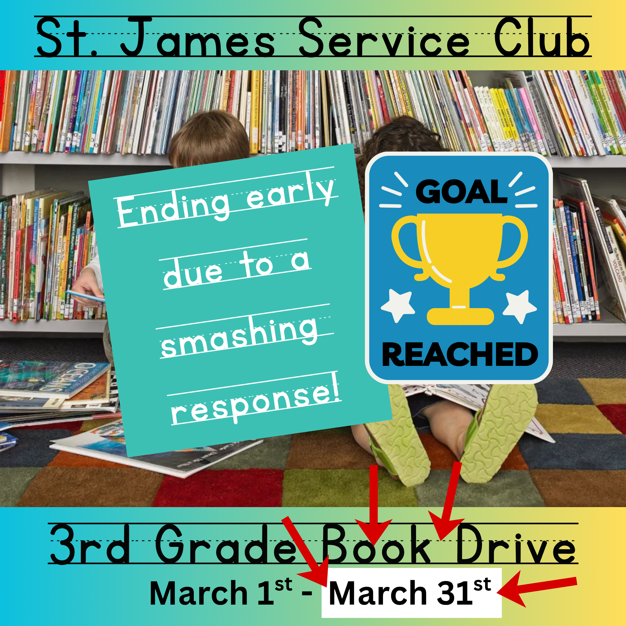 We are officially ending the book drive on March 31st, an entire month early, and will close down the Amazon Wish List.